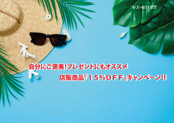 店販商品『15%OFF』キャンペーン「8月2~8月31日まで」