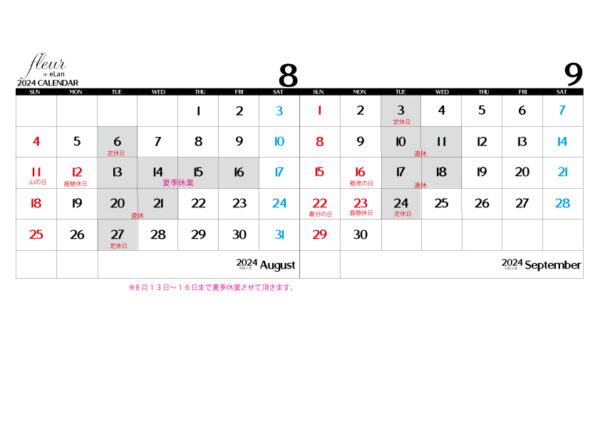 8月の定休日