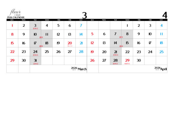 • 4月7日(火)・8日(水) ※第2週の火水(連休)
